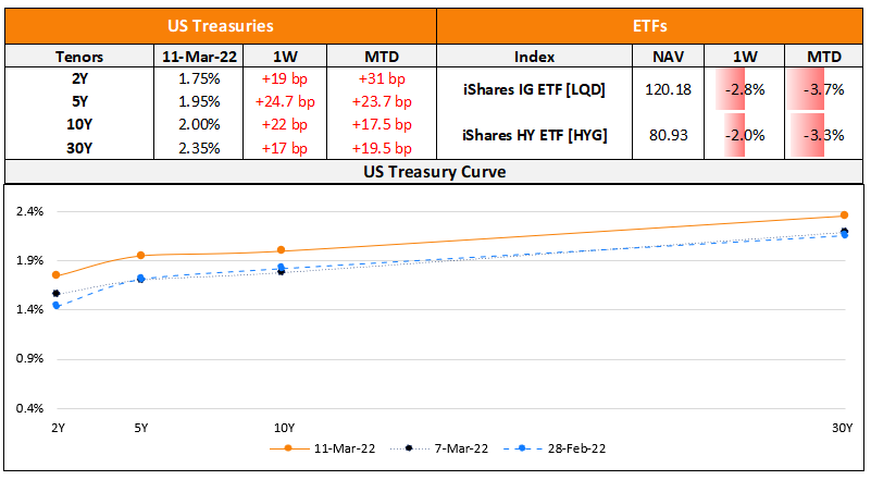 US primary market issuances picked-up to a massive $55bn vs. $43bn in the week prior, primarily driven by AT&T-Discovery’s jumbo $30bn 11-part deal, the fourth largest bond deal ever in corporate issuance history. Investment grade (IG) corporates once again dominated, with $54.5bn of deals while high yield (HY) issuance stood at a mere $500mn. Other prominent IG deals included Goldman Sachs’ $6bn four-trancher and Citigroup’s $5.25bn three-trancher In the HY space, Carpenter Technology and Guitar Center raised $300mn and $200mn each. In North America, there were a total of 35 upgrades and 19 downgrades combined across the three major rating agencies last week. LatAm issuance was muted vs. $2bn in the prior week, solely from Chile’s sustainability-linked bond deal. In South America, there was 1 upgrade and 5 downgrades across the major rating agencies. EU Corporate G3 issuances stood at $17.8bn vs. $12.8bn in the week prior, led by Commerzbank’s €3.5bn two-trancher, followed by KfW and BASF’s €2bn two-part deals each. Across the European region, there were 11 upgrades and 224 downgrades across the three major rating agencies, with the chunk of downgrades once again dominated by Ukranian and Russian corporates. The GCC G3 region saw a mere $69mn in issuances vs. no issuances in the week before. Across the Middle East/Africa region, there were no upgrades and 4 downgrades across the three major rating agencies. APAC ex-Japan G3 issuances stood at $8.3bn vs. $5.4bn led by ANZ Bank’s €1.75bn, National Australia Bank’s (NAB) €1.5bn and UOB’s €1.5bn deals. DBS also stood among the large deals raising $1.5bn via Asia’s Asia’s largest USD-denominated covered bond deal (excluding Australia). In the APAC region, there were 2 upgrades and 5 downgrades combined across the three major rating agencies last week.