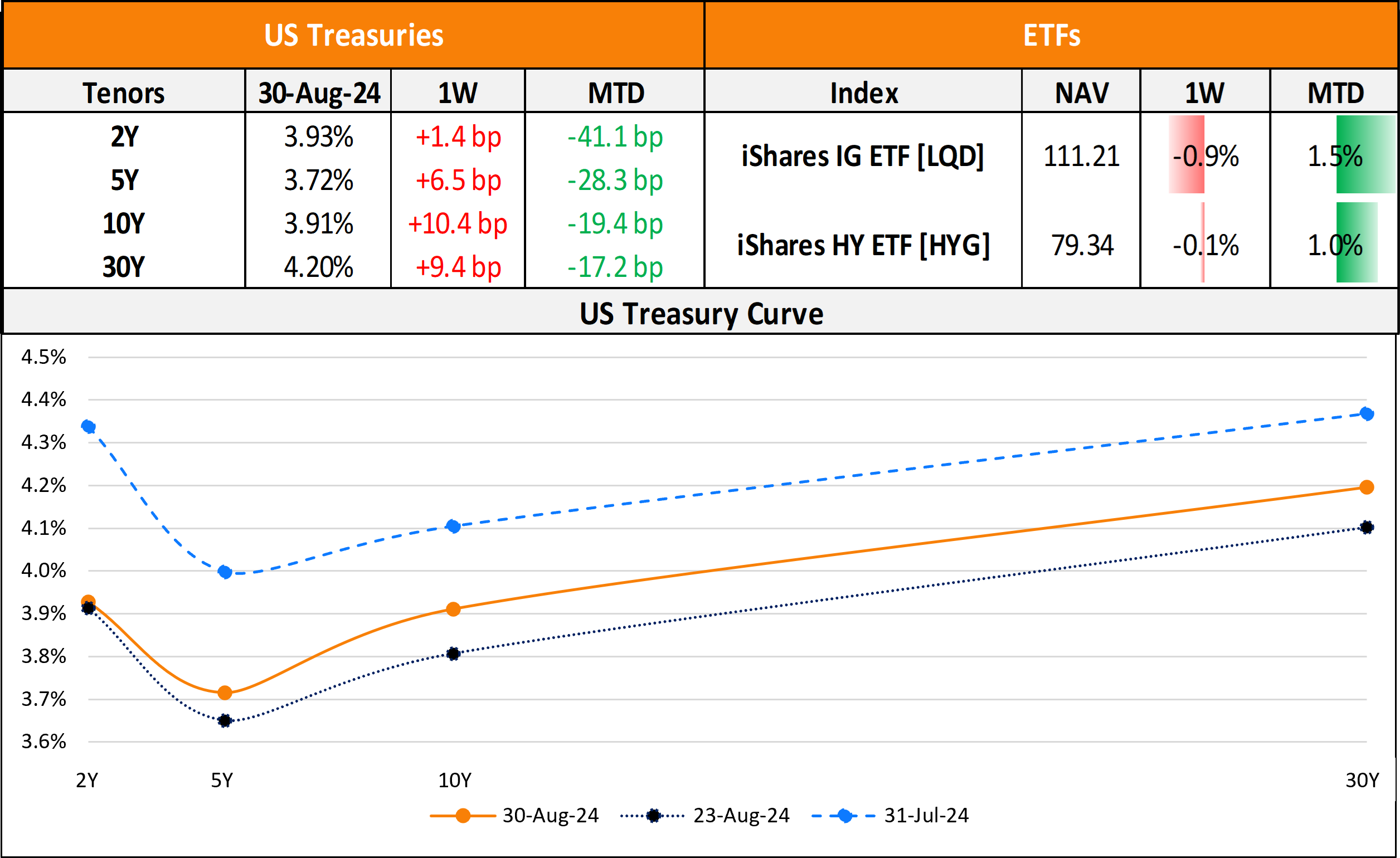 US primary market issuances dropped significantly to just $949.7mn last week vs. $21.9bn in the week prior to it. IG issuers took up $839.7mn of the total, led by $300mn deal each by New York Life Insurance and Associated Banc Corp, followed by EverBank Financials’ deal of $150mn. Last week saw no HY issuances from the region. In North America, there were a total of 20 upgrades and 30 downgrades across the three major rating agencies last week. US IG funds saw $1.76bn of inflows for the week ending August 28, reversing the outflows of $373.9mn in the week prior to it. HY funds saw $1.3bn in inflows, adding to the $1.9bn inflows seen in the week before this.