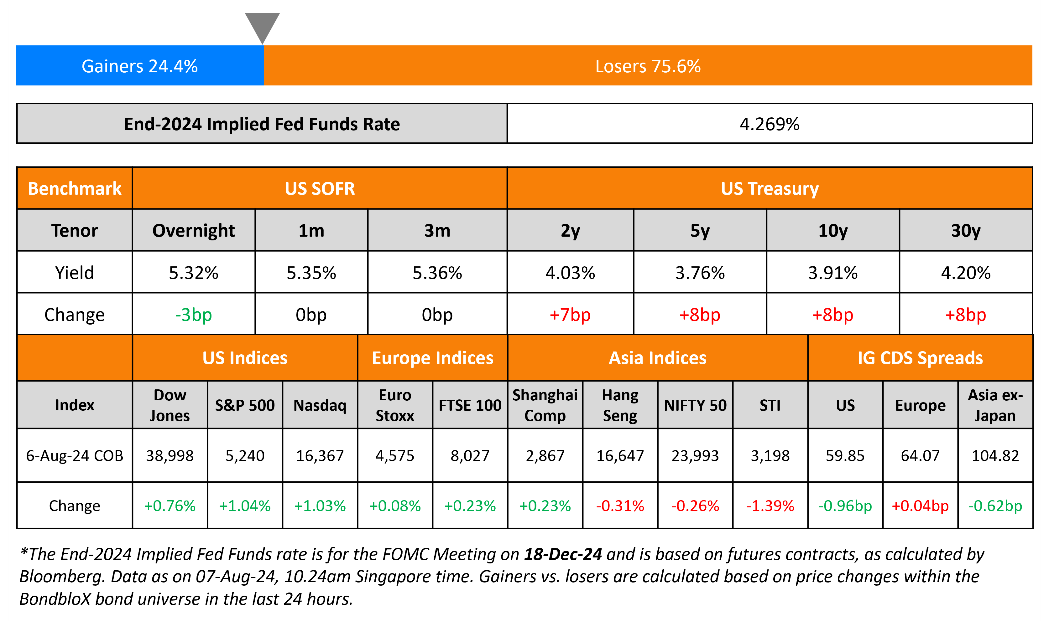 US Treasury yields jumped higher again on Tuesday, up by 7-8bp across the curve. The US Treasury’s $58bn 3Y bond auction saw solid demand, with a bid-to-cover ratio of 2.55x and an indirect bidder acceptance rate of 64.4%. The auction saw a final yield of 3.81%, stopping through the when-issued yield. US equities rallied yesterday, with the S&P and Nasdaq up by over 1% each. US IG and HY CDS spreads tightened by 1bp and 0.5bp respectively.
