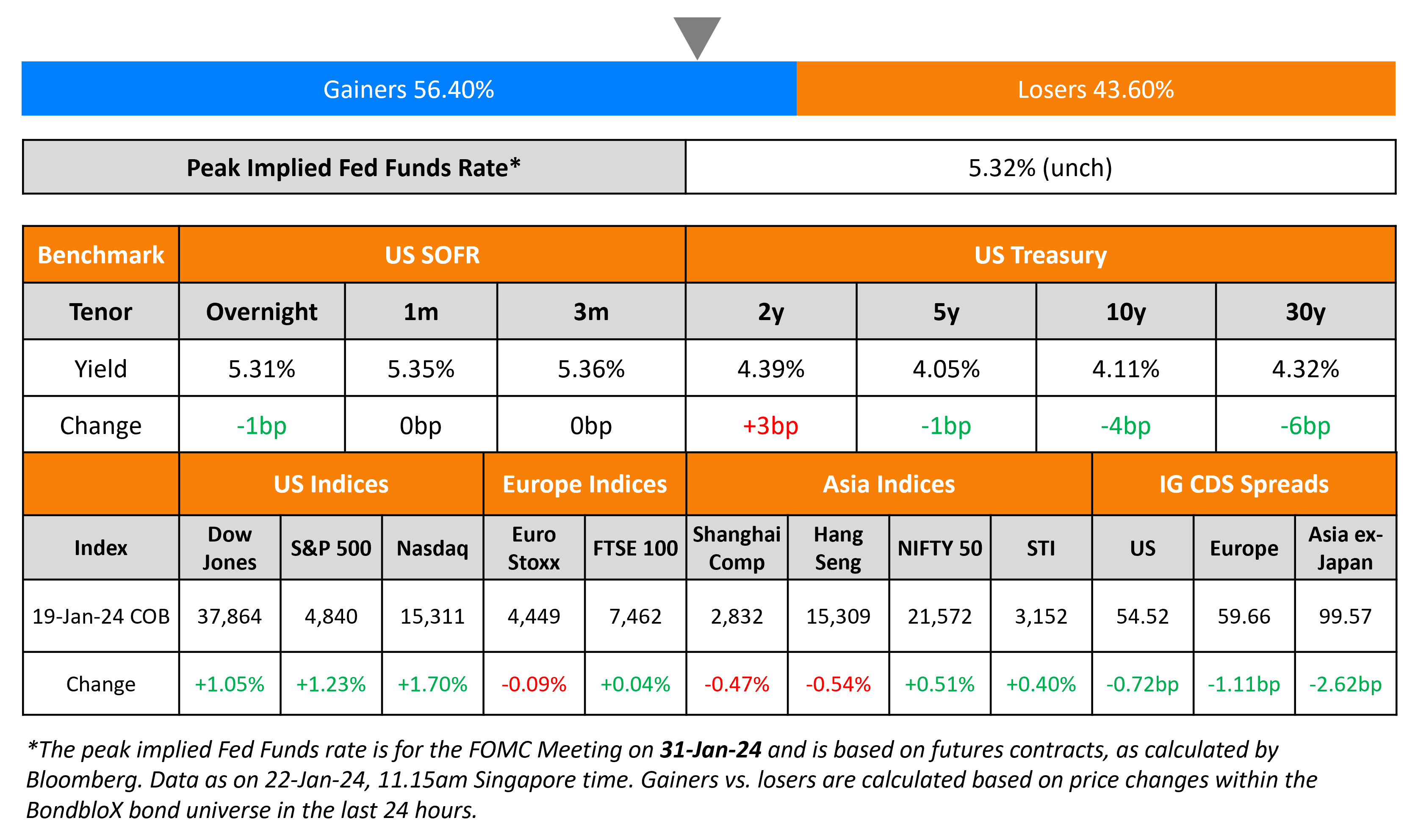 US Treasury yields broadly trudged lower on Friday with the 10Y down 4bp, while the 2Y moved 3bp higher. The University of Michigan’s consumer sentiment index rose 9.1 points, the biggest monthly advance since 2005, to 78.8. The was the highest reading since July 2021, much above estimates of 67.0. The survey’s reading of 1Y inflation expectations fell to 2.9% this month, the lowest level since December 2020. That was down from 3.1% in December. Also, the 5Y inflation outlook slipped to 2.8% from 2.9% in the prior month, below estimates of 3.0%. US IG CDS spreads tightened 0.7bp and HY spreads tightened 5bp. S&P and Nasdaq rallied 1.2% and 1.7% respectively.