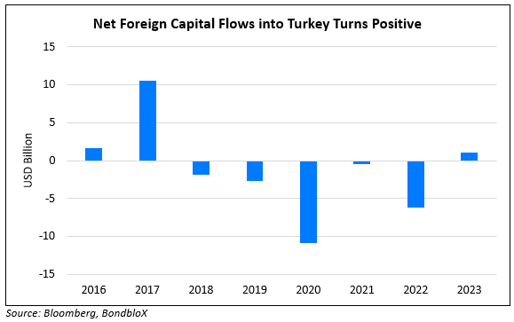 Turkey’s stocks and bonds drew its first foreign inflows in six years, as per the central bank’s data. This comes after the country’s move in June towards higher interest rates and a more orthodox monetary policy that is said to have seen favorable investor sentiment. Foreign investors bought a net $528.6mn in Turkish stocks and bonds last week, with the cumulative inflows this year touching $1.1bn. Since June, Turkish President Erdogan appointed Hafize Gaye Erkan and Mehmet Simsek as the central bank governor and finance minister respectively. Bloomberg notes that while foreigners’ total ownership levels are still far from what was seen prior to 2018, recent inflows suggest a shift away from negative sentiment.