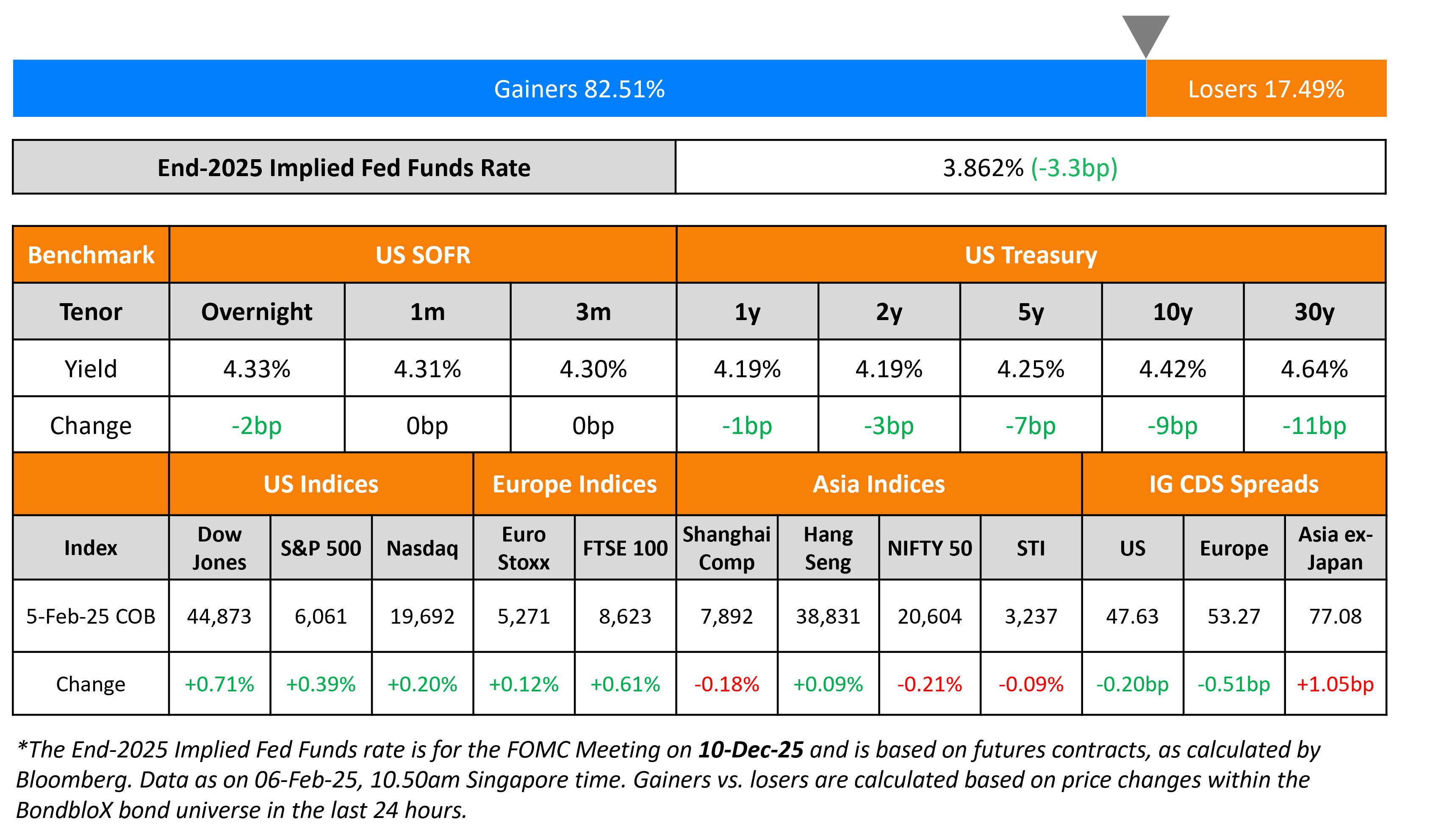 US equity markets were higher with the S&P and Nasdaq up by 0.2-0.4%. Looking at credit markets, US IG and HY CDS spreads tightened by 0.2bp and 1.1bp respectively. European equity markets were higher too. European IG and Crossover CDS spreads tightened by 0.5bp and 1.5bp respectively. Asian equities have opened in the green this morning. Asia ex-Japan CDS spreads were 1.1bp wider.