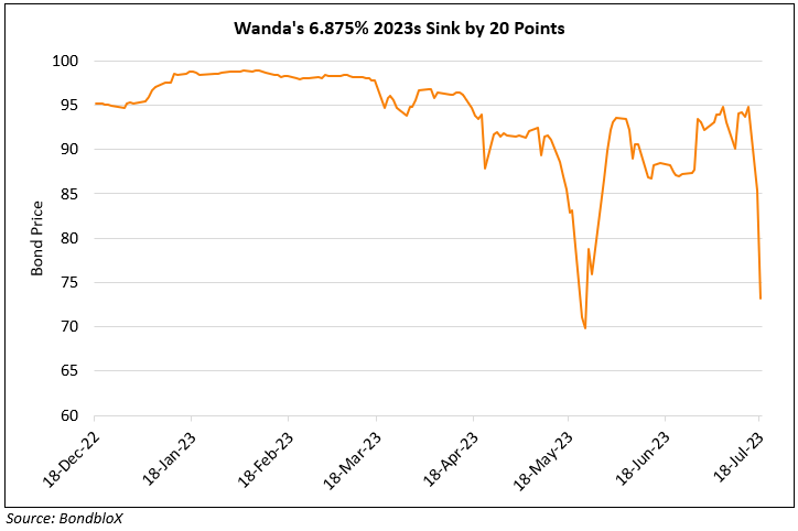 Dollar bonds of Wanda Group plummeted across the curve with its 6.875% bond due July 2023 down over 20 points. This comes after its unit Dalian Wanda Commercial Management Group said it is facing a funding shortfall of about $200mn to repay its $400mn notes due next week, as per sources. The bonds have no grace period and thus, non-payment of the notes would lead to default. Fears about Wanda’s debt have affected the company and the broad property sector over the last few months. The ripple effects from Wanda’s news have also been seen on COGARDs near term bonds with its 2024s falling by 7-8 points.