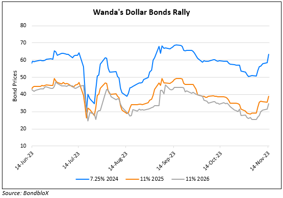 Wanda Properties’ dollar bonds rallied by over 3-5 points. While there was no specific news on its dollar bonds, its shopping mall unit, Wanda Commercial Management, refiled its application for an IPO in Hong Kong. This comes after the company in June, filed a preliminary prospectus for the fourth time. The IPO is particularly being watched out for, as a failure to complete it IPO by end-2023 would see them make a sizeable RMB 30bn ($4.1bn) repayment to the mall unit’s investors. In late September, it was reported that Dalian Wanda was in negotiations with its backers to avoid the above repayment if the IPO failed.