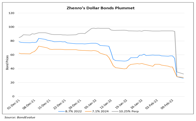 Dollar bonds of Zhenro Properties crashed on speculation that the developer will not redeem its $200mn 10.25% Perp which has a call option exercisable on March 5, 2022 in a bid to maintain sufficient liquidity. Sources told the Post that Zhenro was debating whether it was necessary to buy back all of the Perps at once, as it has other debts due in 2022 and since other developers were extending their bond repayment schedule. Zhenro’s sales in January were down 30% YoY to RMB 7.9bn ($1.2bn). As per SCMP’s sources, Zhenro told investors late on Thursday that its plan to call the bond remain unchanged. Despite the reassurance by the company, its bonds and shares plummeted.